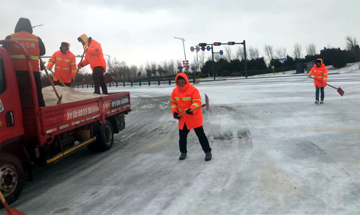 堅持包網(wǎng)定位,協(xié)作聯(lián)動到位。該公司第一時間啟動掃雪除冰應急預案,主要領導統(tǒng)籌推進,分管領導指導督促分片、重點區(qū)域工作,定位分公司配合做好包片各項工作。組建共200余人6支掃雪除冰應急隊伍,加強應急隊伍人員培訓和指導,具備快速響應能力,實現(xiàn)主次干道、核心區(qū)等重點區(qū)域路面無積雪。悅升保潔分公司突擊隊員在統(tǒng)一指揮調配下不分白天與夜晚,每天工作10個多小時,工作現(xiàn)場盡管手磨出了血泡,仍然堅守道路最前沿。黨員先鋒張學軍、薛明柱、楊靜、石峰、朱海勇等同志更是率先垂范,黨員模范作用有力得以彰顯。到目前為止共人工撒放融雪鹽斤60多車,500多噸。