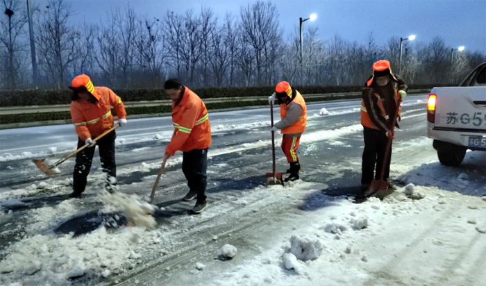 2月19日至21日,受持續(xù)大風寒潮天氣影響,給徐圩新區(qū)、板橋工業(yè)園區(qū)各條道路蓋上較厚冰層。為全力以赴掃雪除冰、排除隱患,悅升公司堅持“人動機動、雪停雪凈”原則,落實好“三包三聯(lián)”工作機制,實現(xiàn)道路通暢、安全出行,切實保障好廣大群眾正常生產(chǎn)生活秩序和生命財產(chǎn)安全。