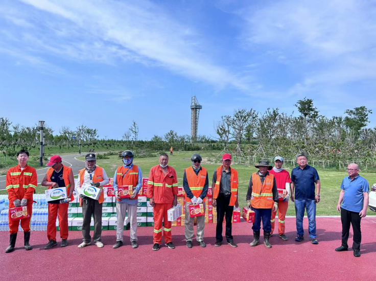 6月25日下午,正值端午假期,夏日驕陽(yáng),熱浪襲人,綠化工人扛著酷暑?yuàn)^戰(zhàn)在樹(shù)木移植一線(xiàn)。同時(shí),也牽動(dòng)著公司領(lǐng)導(dǎo)的心。投資公司黨委書(shū)記、董事長(zhǎng)、總經(jīng)理莊清付冒著炎炎烈日來(lái)到張圩湖公園,走訪(fǎng)慰問(wèn)高溫下奮戰(zhàn)在一線(xiàn)的廣大職工。
