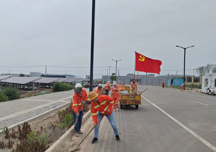 6月21日,該黨支部近30余名黨員在支部的感召下,匯集于新區(qū)節(jié)能一路道路兩邊。勞動(dòng)現(xiàn)場(chǎng),黨員生產(chǎn)骨干姚功身先士卒,無(wú)懼泥土粉塵揚(yáng)起,揮汗清理,不怕臟、不怕累,不放過(guò)任何衛(wèi)生死角。勞模張學(xué)軍與老黨員徐習(xí)東相互配合,打包,裝車(chē), 及時(shí)轉(zhuǎn)運(yùn)各類(lèi)垃圾達(dá)50多袋,清掃路面積土近1500米長(zhǎng),大家分工明確,重活臟活搶著干。隊(duì)員們齊心協(xié)力,用實(shí)際行動(dòng)詮釋黨員吃苦在前、勇于擔(dān)當(dāng)?shù)姆瞰I(xiàn)精神。經(jīng)過(guò)四個(gè)多小時(shí)清理,主干道及周邊道路垃圾、雜草、泥土全部清理干凈,高質(zhì)量完成奉獻(xiàn)勞動(dòng),鮮艷的黨旗在陽(yáng)光的照耀下顯得格外閃亮。(楊波)