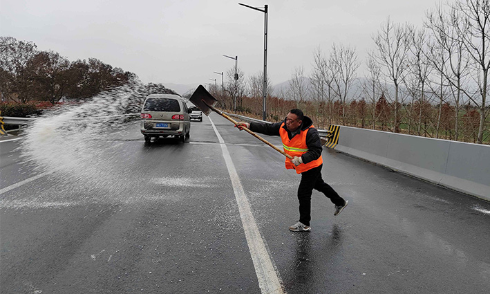 20日至21日,該分公司百余突擊隊(duì)員齊心協(xié)力、以雪為“令”、迅速破“冰”、無懼風(fēng)寒、不分白天與夜晚,持續(xù)工作10個(gè)多小時(shí),仍然堅(jiān)守道路最前沿。黨員先鋒張學(xué)軍、薛明柱、楊靜、石峰、朱海勇等同志更是率先垂范,黨員模范作用有力得以彰顯。到目前為止共人工撒放融雪鹽斤80多車,600多噸。