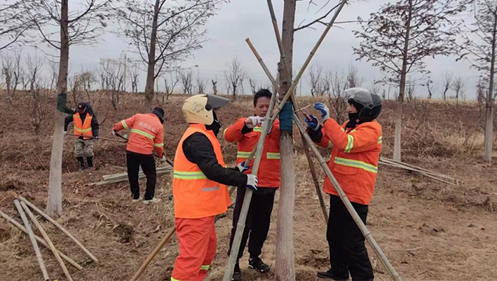 昨日,空氣溫度驟降,伴隨著大雨。綠化分公司立即啟動應急預案,各班組強化轄區(qū)內喬木加固支撐防止樹木倒伏、加挖排水溝保證排澇處理等措施。應急維護工作全體人員24小時值待命,確保第一時間將險情排除。
