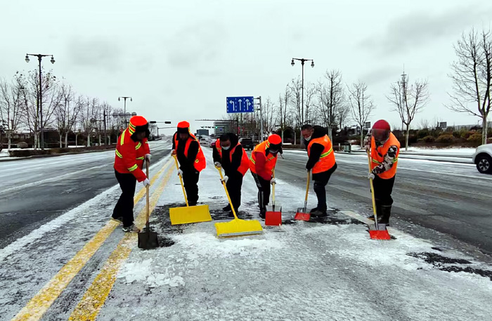 ? ? ? ?連日來,受強(qiáng)冷空氣影響,鵝毛雪花持續(xù)飄落港城大地。為保障行人車輛往來徐圩新城安全通行。保潔分公司全員上下協(xié)力同心、“遇雪”奮戰(zhàn),確保責(zé)任區(qū)域道路車輛行人安全出行。