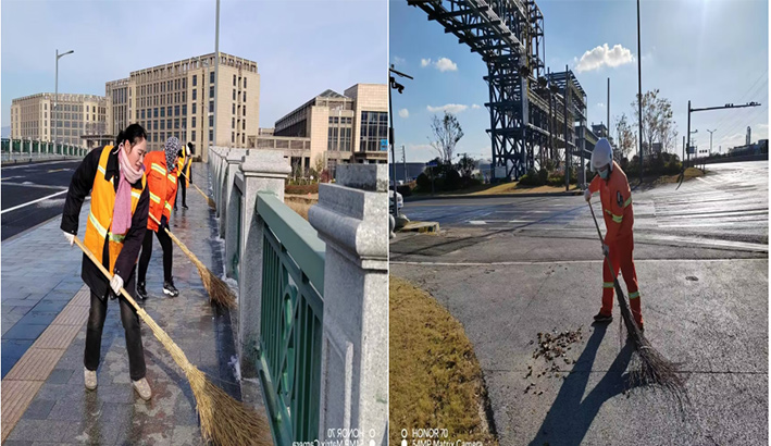 人工保潔“無所畏懼”。該分公司9個班組100多名保潔人員每天在班長的帶動下,無懼徐圩海風吹透身體,盡管手凍僵了,仍然揮動手中掃把清掃園區(qū)輔道落葉、泥土1500多米長,清倒各種果皮箱300多個,轉運各類生活垃圾500多包,清洗站臺20多個,清除道路坑塘積水30多處,深冬時節(jié)道路人工保潔質效再“升溫”。