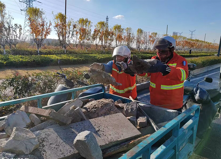 及時配合徐圩城建處理陬山路、石化七消防通道等路段施工產(chǎn)生動態(tài)各種垃圾20多車,再次轉(zhuǎn)運陬山路主道兩側(cè)綠化帶中石塊2000多斤。針對園區(qū)建設(shè)發(fā)展情況,序時推進(jìn)石化五道,四道樣板路工程打造,組織人員突擊清理輔道雜草近1000余米長,撿拾管廊下各種垃圾300余袋。勞動現(xiàn)場,黨員生產(chǎn)骨干薛明柱、朱海勇等同志先鋒示范閃亮道路最前沿,用實際行動保障園區(qū)美麗環(huán)境。