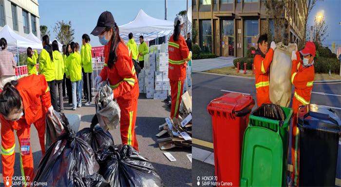 10月22日凌晨3時,保潔公司40余名保潔先鋒兵鋒六路安全序時趕赴賽事保障區(qū)域。道路現場,保潔衛(wèi)士無懼深秋徐圩海風吹透身體,兩人一組,揮動手中掃把,徒手清掃各個活動區(qū)域積土1000多米長,撿拾海風吹落各種垃圾100余包。比賽現場,保潔人員無視秋日暖陽照曬,及時有效清理運動員丟棄飲料瓶300余包,清理打包各種餐盒2000多個,轉運各種垃圾200多車。大家齊心合力的工作精神與賽事活動融入一體。