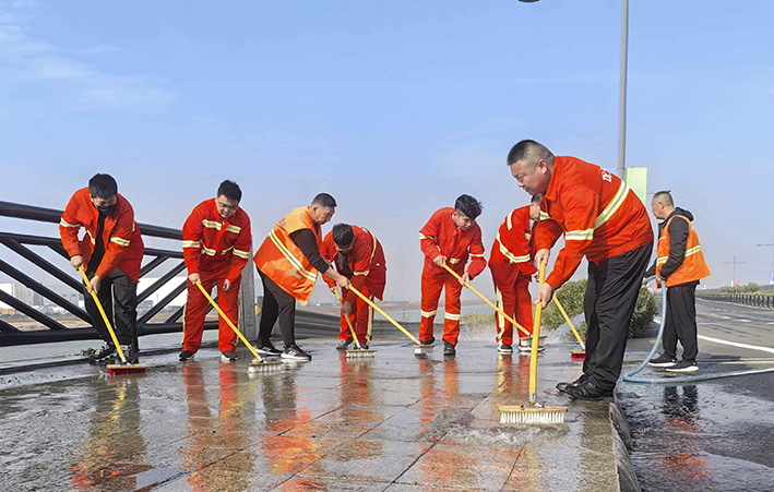 10月18日上午,悅升公司機(jī)關(guān)管理人員深入一線對海濱大道南卡口至疏港大道路段及橋梁路緣石進(jìn)行強(qiáng)化清洗,用實(shí)干打好賽道保障“戰(zhàn)役”。工作現(xiàn)場,一臺高壓沖洗車先行對賽道路緣石和橋梁輔道進(jìn)行高壓沖洗,隨后,工作人員一字排開,用毛刷不斷擦洗地面頑固臟污,大家斗志昂揚(yáng)、步步推進(jìn),做到?jīng)_洗無漏洗、無死角,最后再用灑水車清洗一遍。經(jīng)過近三小時(shí)清洗,高標(biāo)準(zhǔn)完成路源石和橋梁輔道保潔清洗工作,有效提高了賽道潔凈度。截至目前,已完成該路段2000多米路緣石清洗工作。