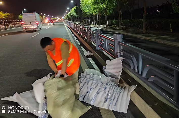 為及時(shí)有效排除道路突發(fā)障礙,保潔勇士無(wú)所畏懼,勇于擔(dān)當(dāng),第一時(shí)間趕赴道路車輛拋灑事發(fā)地段,用實(shí)干精神彰顯鹽場(chǎng)人愛(ài)崗敬業(yè)高尚風(fēng)采。