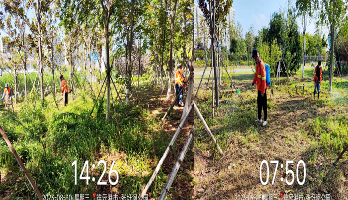 ? ? ? ?工作中,技術人員李傳武與管養(yǎng)班組長班長田恒亮、協(xié)管員葛承東奮戰(zhàn)在第一線,身先士卒,無懼高溫及蚊蟲叮咬,班組成員在其感染下,步調一致、步步為營,有序推進各項工程進度。經(jīng)統(tǒng)計,在張圩港河公園100萬平方米草坪綠化帶上開展各類修剪10次、雜草反復清理近20次、病蟲害藥物消殺4次、新栽各類苗木600余株、清理枯死樹木300余株、對相關造型樹進行修型。在防汛抗旱維綠工作,采取白天人工澆水搭配晚間滴灌澆水的方法,確保綠綠植健康生長;暴雨后扶正傾倒樹木11余株,積極排澇2次……各項工作數(shù)據(jù)一路“飄紅”。