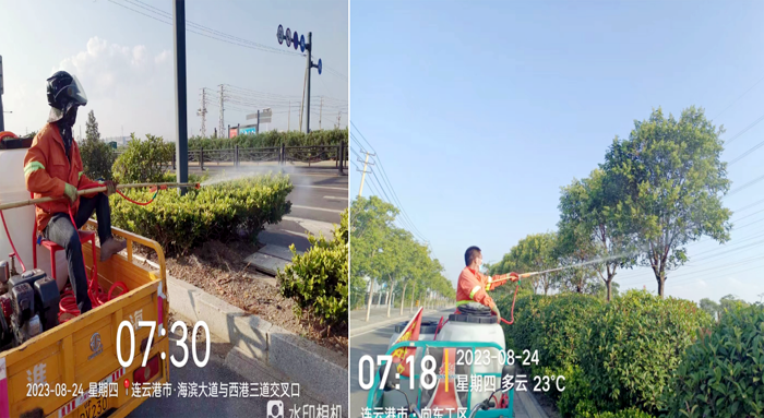 8月23日,綠化分公司管養(yǎng)轄區(qū)內(nèi)進行植物病蟲害專項檢查。檢查中發(fā)現(xiàn)徐新路、228國道、南京路、上海路等出現(xiàn)病蟲害,造成苗木一定的枯死、病害。該分公司根據(jù)苗木習(xí)性迅速制定整改方案對癥下藥,實行按片劃分,責(zé)任到人。各班組抓住病蟲害防治的有利時機,嚴(yán)格執(zhí)行農(nóng)藥安全使用規(guī)定,采用生物制劑等低毒高效農(nóng)藥,嚴(yán)格控制用藥比例,利用機動噴霧器等工具進行噴灑農(nóng)藥。對枝干害蟲較嚴(yán)重的樹木,進行重點清理,增加噴藥次數(shù),全方位控制病蟲害疫情的擴大和蔓延,有效保護了徐圩新區(qū)綠化植被的健康生長。噴灑農(nóng)藥結(jié)束后,藥罐統(tǒng)一回收,按要求處理,預(yù)防二次污染。