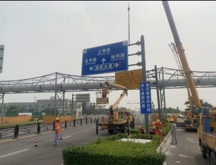 從5月起,市政分公司已著手15座標志牌基座澆筑工作,7月初,完成了基礎養(yǎng)護期,達到安裝條件。因前階段準備工作到位,為此次標志牌安裝作業(yè)順利完成奠定了堅實的基礎。本次施工的道路包括港前大道、蘇海路、徐新路等8條道路,共拆除、安裝大型標志牌15套,工程收入約十萬元。