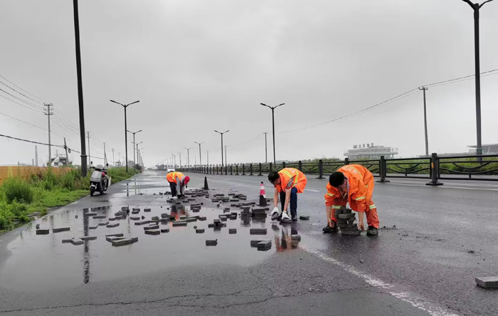 中午12時,保潔分公司接到徐圩城建應(yīng)急處理電話,港前大道向南處近2000多米長路面存在大量拋灑磚塊,對過往車輛造成極大安全隱患,極易引發(fā)安全事故,嚴重影響行車安全。該分公司了解情況后,立即組織安排突擊隊員進行及時清理?,F(xiàn)場,3名身著橘紅工作服的養(yǎng)護人員首先擺放了安全警示錐,隨后徒手進行拋灑物的撿拾工作。經(jīng)過3個多小時的努力,累計搬運磚塊近800多塊,及時消除了安全隱患。該路段又恢復(fù)了往日的干凈整潔,車輛通行安全暢通。(楊波)