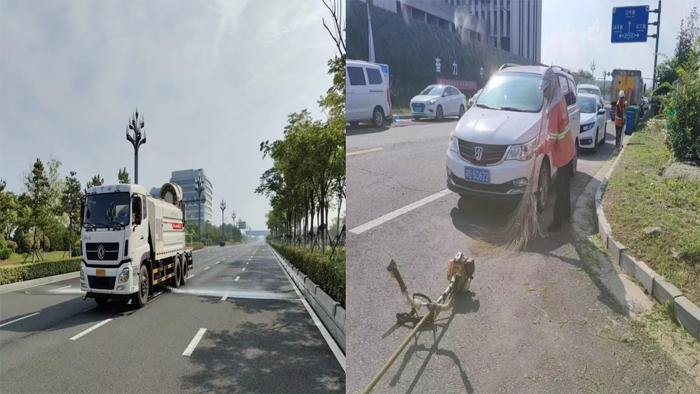 端午小長假期間,保潔分公司精心安排,提前策劃、各條戰(zhàn)線保潔人員無懼晴熱高溫天氣,用汗水描繪愛崗敬業(yè)美麗畫卷,用堅韌實干保障徐圩新城環(huán)境衛(wèi)生整潔。