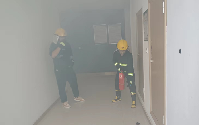 本次演練模擬公司辦公樓三樓電纜井因電路故障引發(fā)火情組織職工開展應(yīng)急疏散。“起火啦!”15時許,辦公樓三樓一電纜井內(nèi)突然涌出滾滾濃煙。臨近人員發(fā)現(xiàn)著火后,第一時間使用滅火器進(jìn)行撲救。濃煙觸發(fā)自動報警裝置,消防控制室值班人員接到警報后,立即通知志愿消防隊伍趕赴現(xiàn)場撲救,并撥打報警電話,向應(yīng)急指揮部報告。公司應(yīng)急指揮部立即啟動應(yīng)急預(yù)案,滅火搶救組、安全救護(hù)組、緊急疏散組等應(yīng)急小組隨即到位,有條不紊開展滅火、疏散等工作。消防救援隊伍到達(dá)現(xiàn)場后,接過現(xiàn)場指揮權(quán),開展滅火救援。安全搶救組搜索受傷人員,并對受傷人員簡單急救后送往醫(yī)院進(jìn)行治療,緊急疏散組立即組織辦公大樓人員,用濕毛巾捂住口鼻從應(yīng)急通道撤離。10分鐘后,險情排除,應(yīng)急救援結(jié)束。最后,組織部分人員開展滅火實操演練